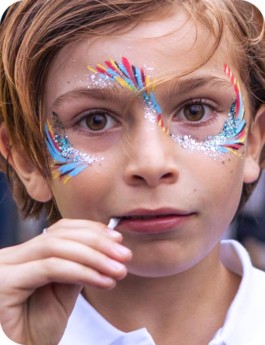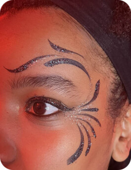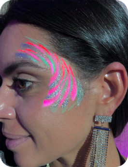 ⚡️ Nos Glitter Make-Ups sont généralement agrémentés de peinture sur visage pour une expérience encore plus vibrante : Aussi, en quelques minutes, nos artistes sont capables de sublimer chaque regard ou encore partie du corps tout en s’adaptant à votre morphologie.