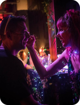 Le Bar à Paillettes ou Glitter Bar, c’est l’animation de maquillage paillettes festival à base de paillettes biodégradables.
