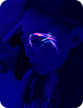 Nous proposons également cette animation à la peinture fluorescente qui réagit à la lumière UV .